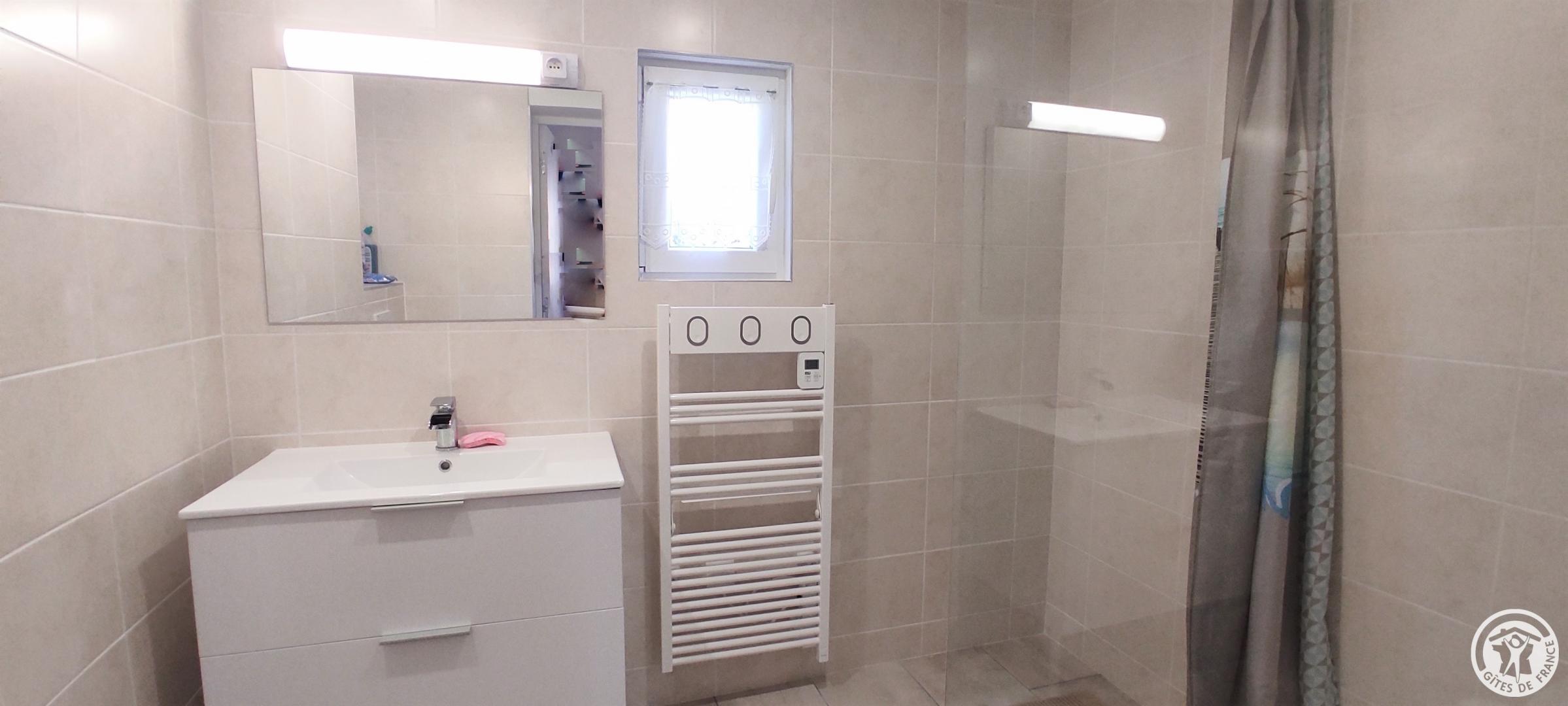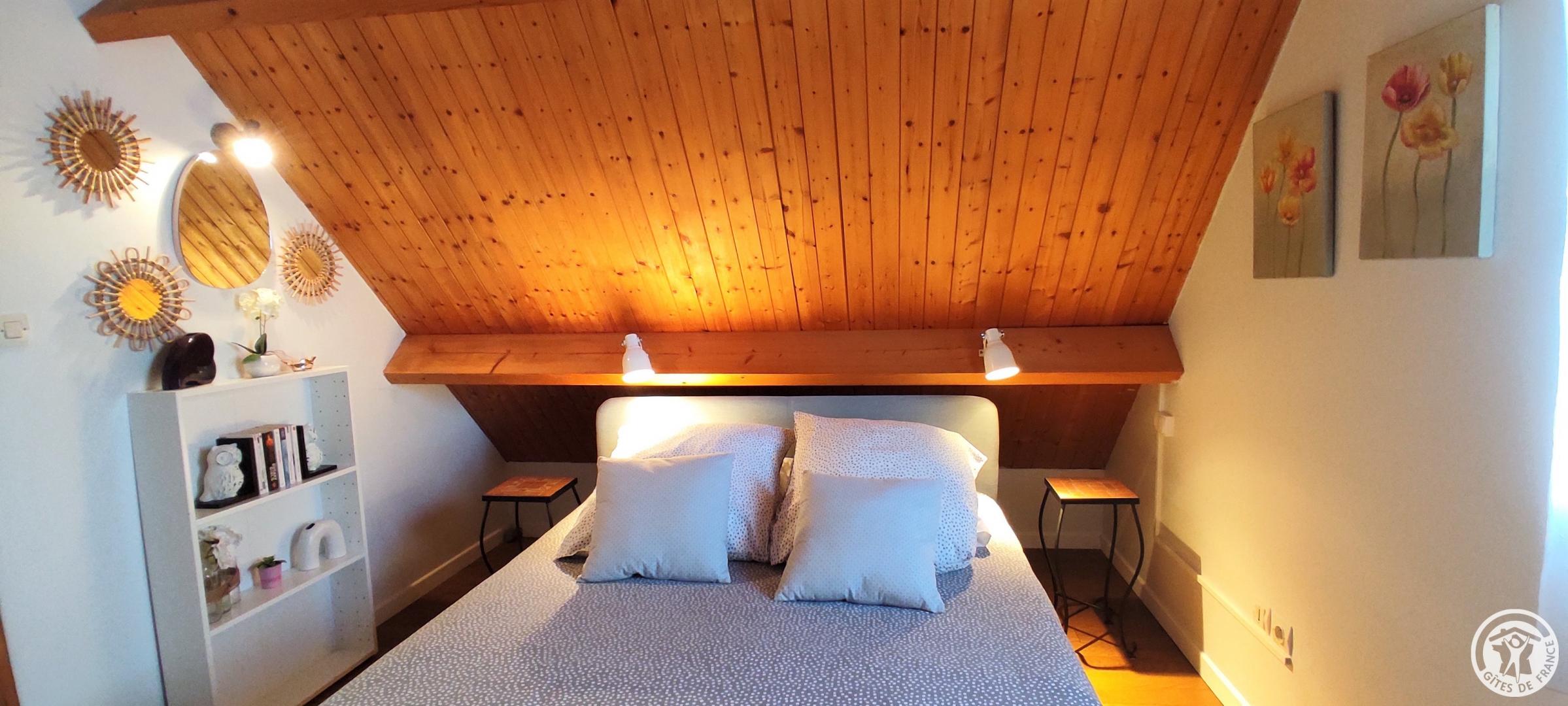 Gîte adjoining on 2 levels. On the 1st floor : 2 bedrooms (1 double bed - 2 single beds) - shower on the bathroom - wc.
