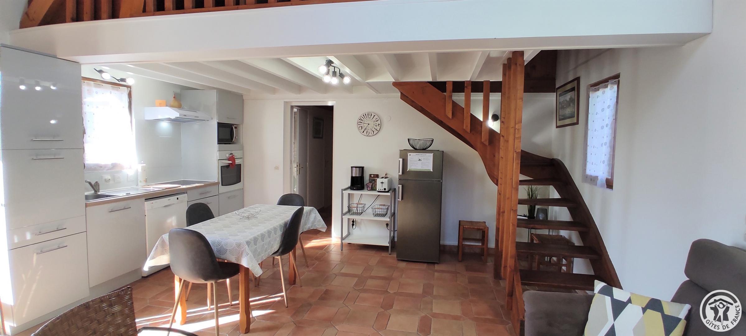 This cottage is on the ground floor, you enter the living room made up of a living room open to the fitted kitchen.