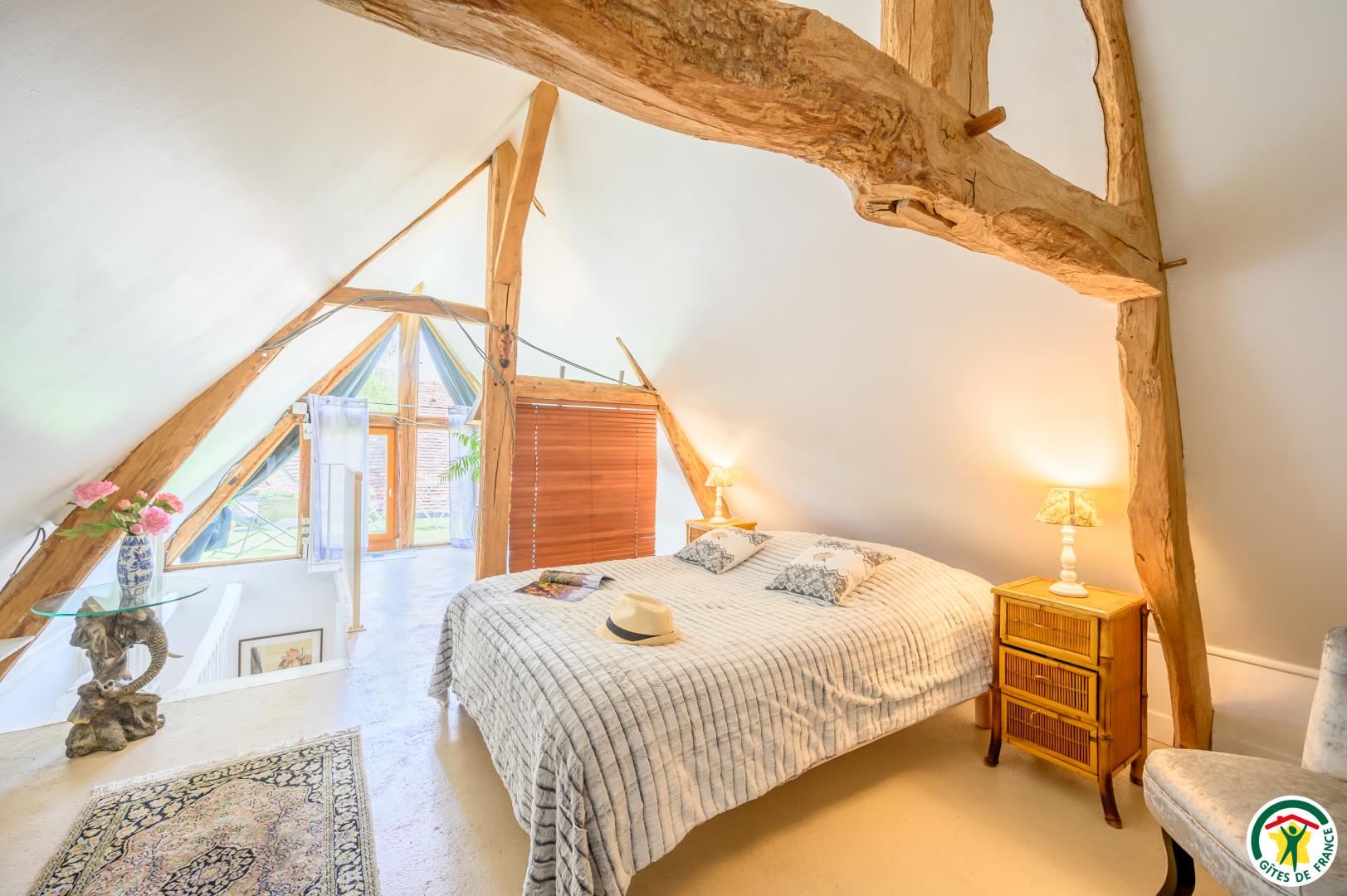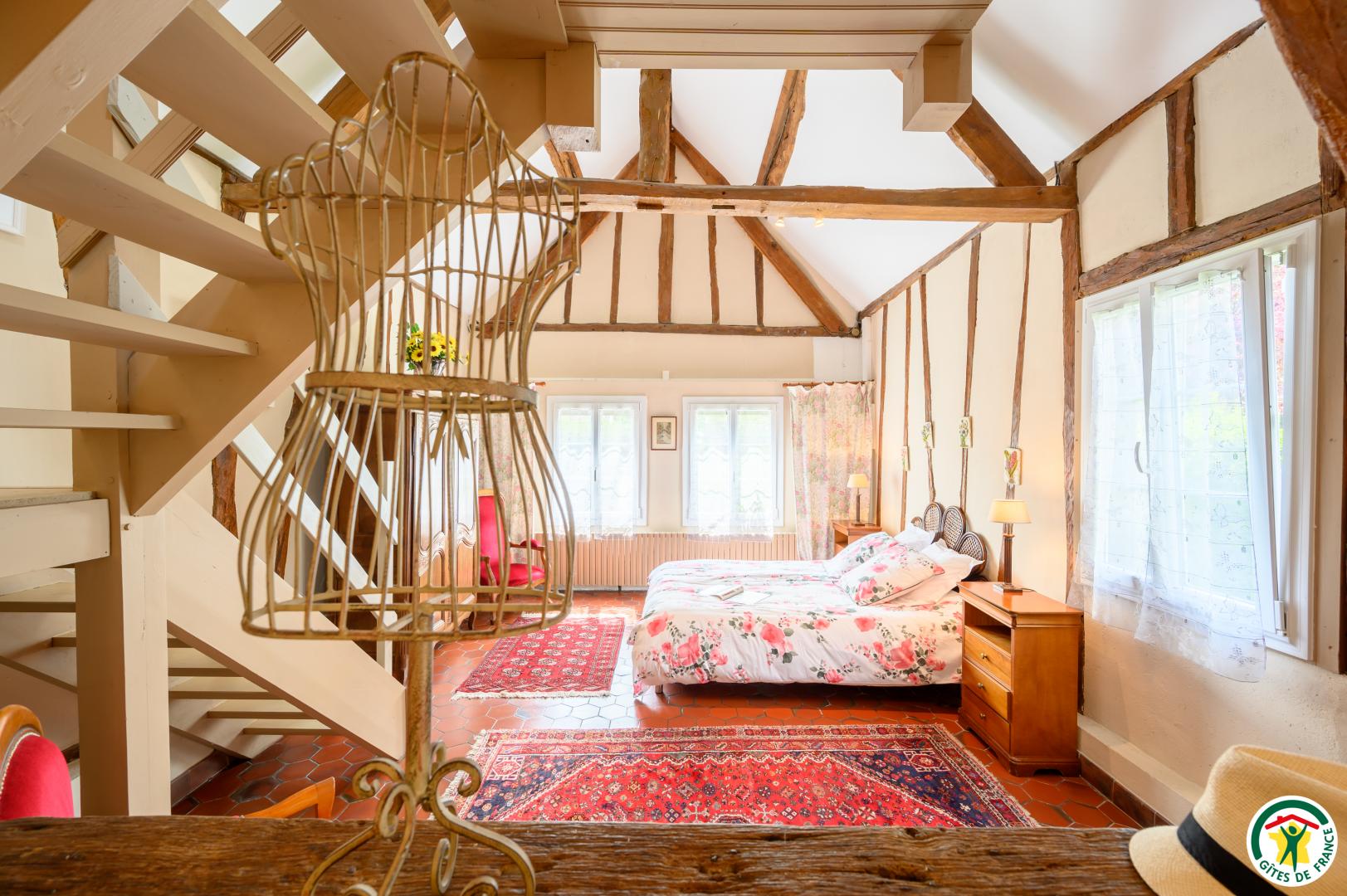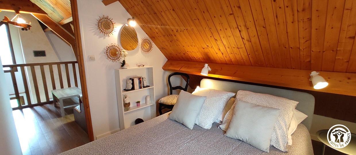 Gîte indépendant de caractère, sur 2 niveaux. Séjour avec canapé convertible. A l'étage : 2 chambres (1 lit 2 personnes - 1 lit de 2 personnes et 2 lits 1 personne).