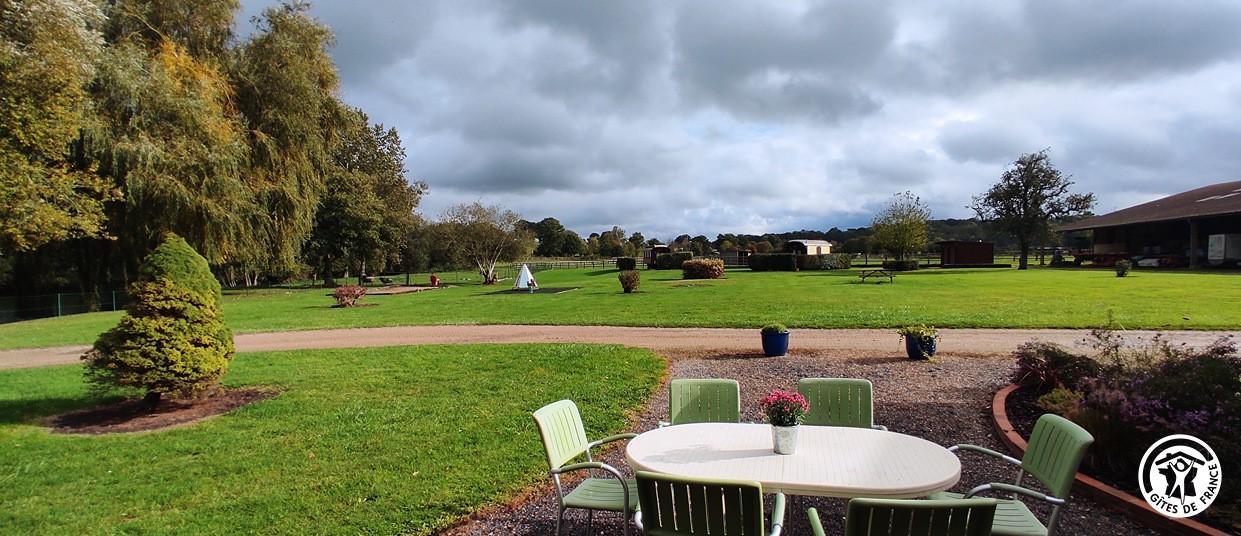 Vous profiterez d'un cadre exceptionnel, en face des prairies et du manège à chevaux.