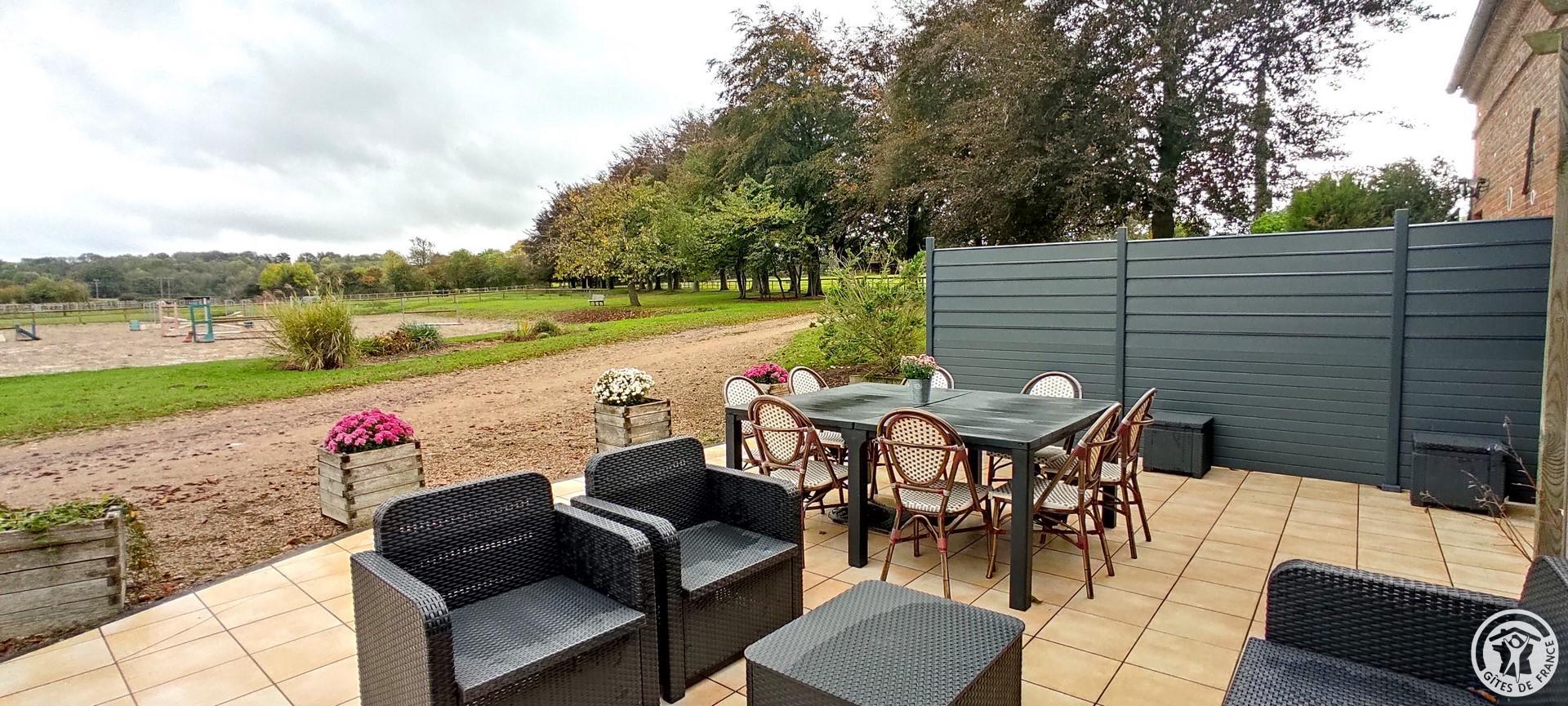 Vous profiterez d'un cadre exceptionnel et calme, en face des prairies et du manège à chevaux. "Les poneys " est un gîte de 52m² situé au rez-de-chaussée d'un autre gîte.